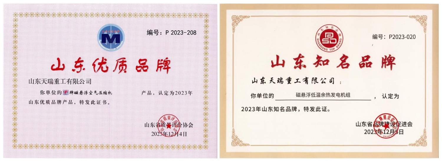 近日,天瑞重工研发生产的磁悬浮空压机、磁悬浮低温余热发电机分别被山东省质量评价协会、山东省品牌建设促进会认定为“山东优 质品牌”、“山东知 名品牌”,成为继磁悬浮鼓风机、磁悬浮真空泵后,再次获此殊荣的两类产品,天瑞重工品牌建设再添硕果。...