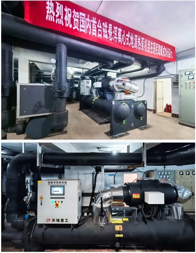 在2024年的供暖季,一场对传统供暖方式的颠覆性技术革命悄然出现。2024年11月16日,天瑞重工自主研发的国内首台磁悬浮离心式地源热泵机组,在山东省潍坊市某住宅小区成功开机运行,标志着城市供暖进入绿色新纪元。冬季供暖是居民日常生活中重要的能源成本之一,传统的供热设备及供热方式,往往伴随着能耗高、环境污染等问题。磁悬浮离心式地源热泵机组凭借其高 效节能、低噪舒适、免维护、智能化等特点,为冬季供暖带来了全新的解决方案。