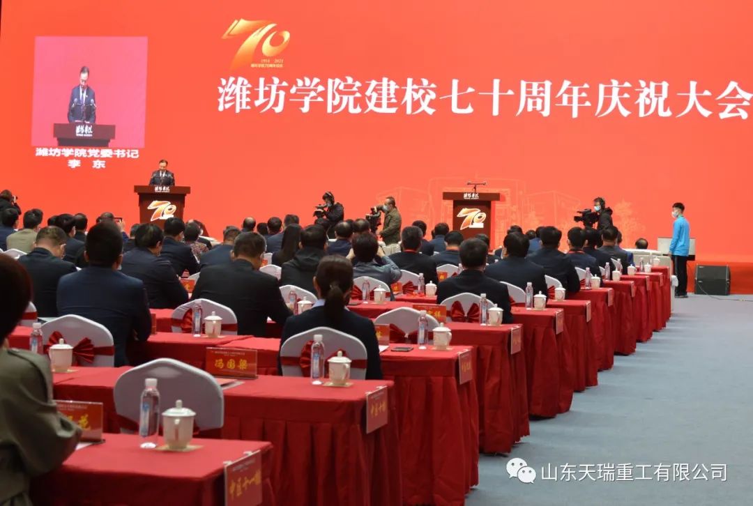 2021年10月16日,潍坊学院迎来七十周年华诞。风雨兼程七十载,造就了潍坊学院的辉煌。天瑞重工董事长、俄罗斯工程院外籍院士李永胜受邀参加庆祝大会,并在嘉宾席前排就座。上午8:30,庆祝大会在庄严的国歌声中拉开帷幕。潍坊学院党委书记李东主持......