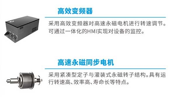 ◇ 采用主动磁力轴承系统,无磨损、无润滑、无维护。