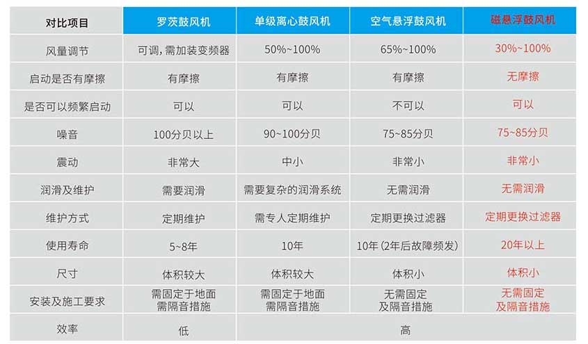 ◇ 与罗茨鼓风机相比,磁浮鼓风机的效率提高了30%以上。